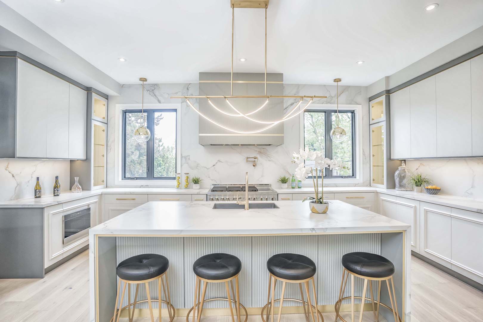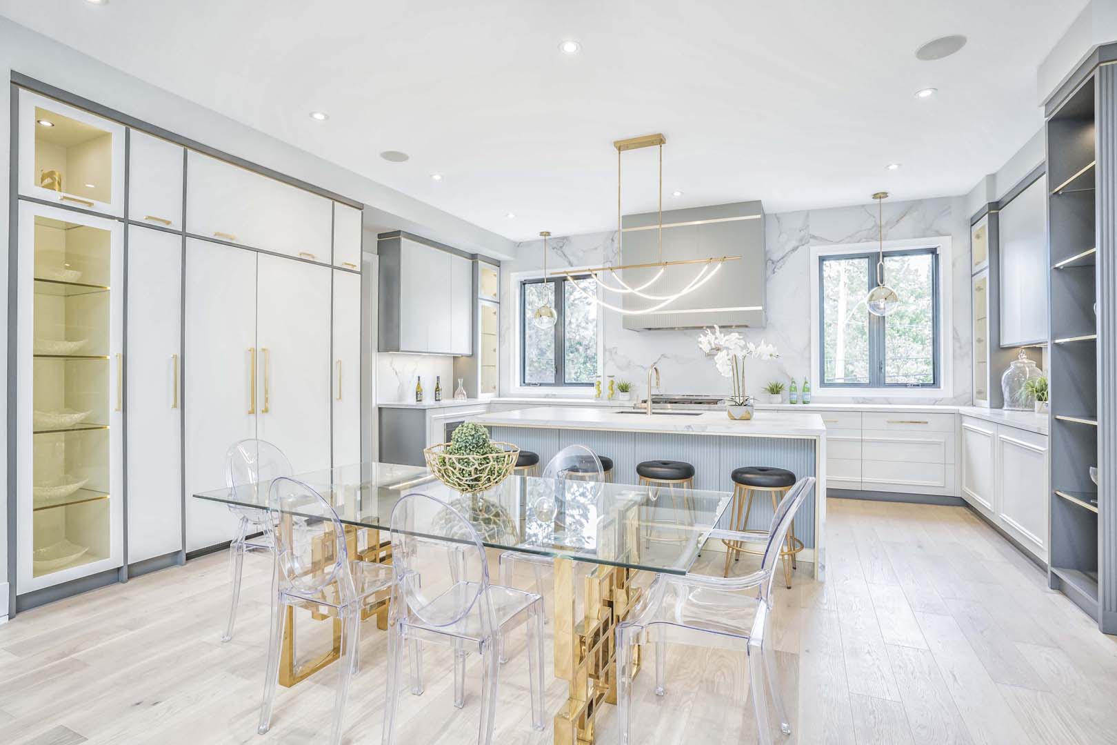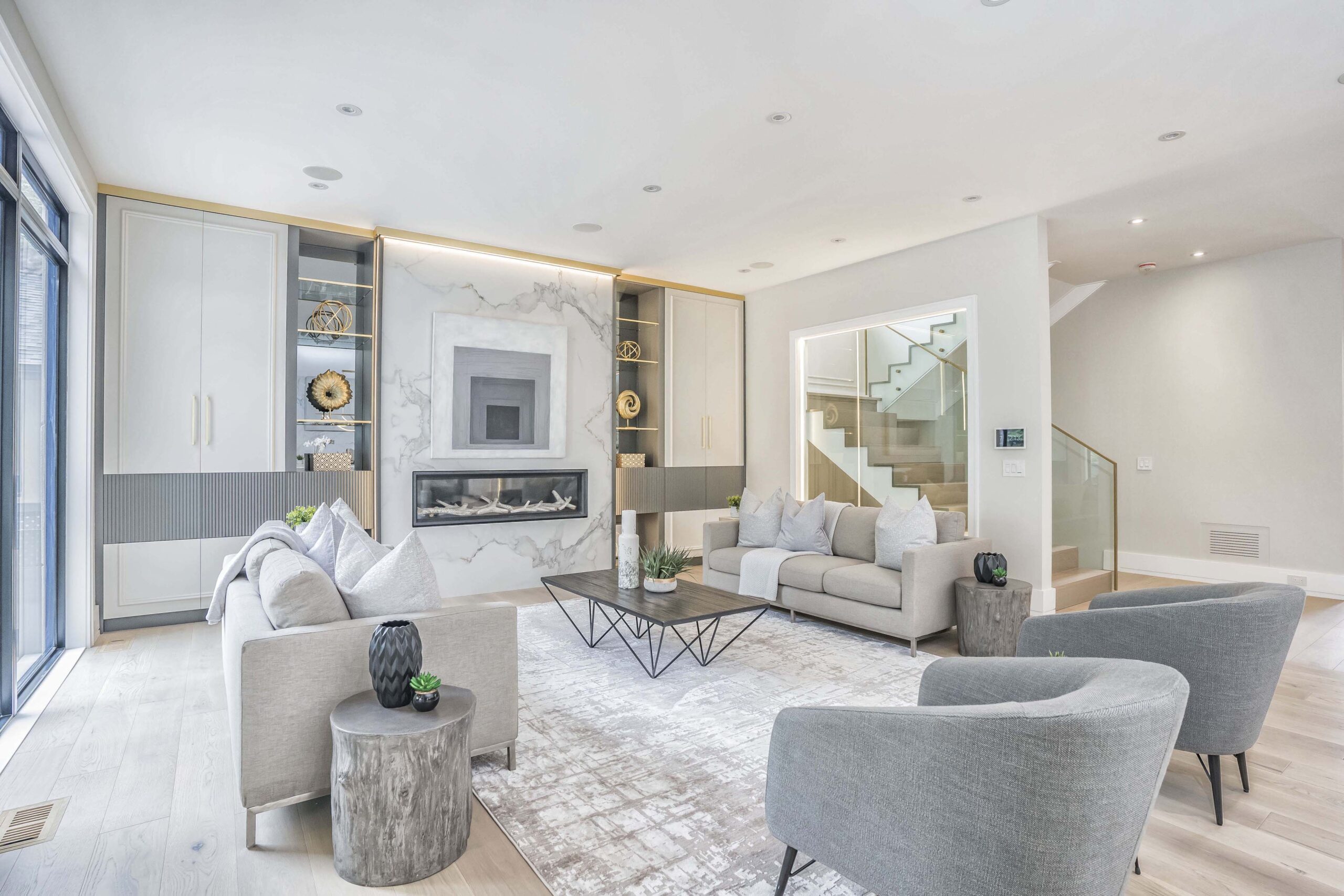 This custom built home in the Humber Valley area was already the epitome of luxury on its own. But the large open spacious rooms needed to be defined. Each element was carefully curated to evoke a sense of belonging to match the existing finishes in the home. From the plush textiles of the furniture that invite comfort, to the layers of luxury trimmings, every choice reflects our passion for design and dedication to our clients’ vision.  No corner was left unturned . . . we ensured that every shelf was filled, every surface was defined, and not matter which angle you viewed the house from, you were left in awe of how the details really matter in a custom luxury build.                                                                                      Our commitment to excellence extends beyond mere aesthetics; we believe in creating environments that resonate with warmth and sophistication. Experience the seamless blend of functionality and beauty that transforms spaces into extraordinary living experiences.